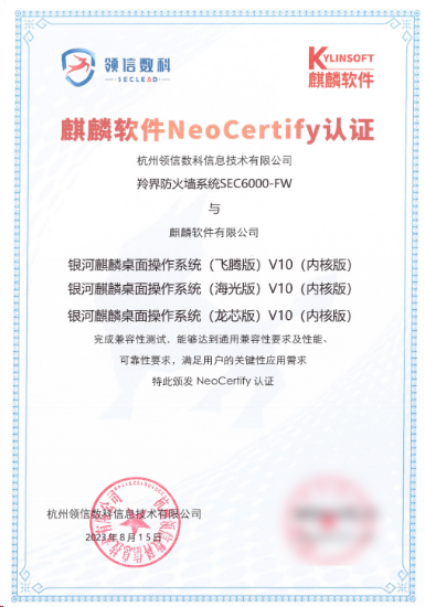 羚界防火墙系统已经完成银河麒麟操作系兼容性认证,上市推出“SEC6000-FW-HG 国产化系列”,设备采用国产化CPU、国产化高性能芯片,核心部件均采用国产认证元器件,采用第三代多核并行化架构,高性能、高可用。