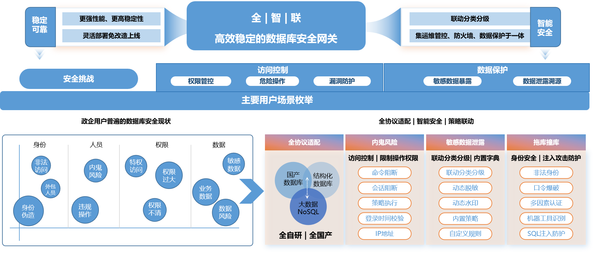 当前数字化建设深入推进,企业数据库作为核心数据资产载体,其应用范围已广泛渗透至电信、金融、政府、商业及企业等各大领域。然而,这一广泛应用也伴随着严峻的数据安全挑战,特别是数据库内部数据的安全性问题,包括敏感信息的防窃取与防篡改,正成为社会各界关注的焦点,众多关键业务系统的稳定运行高度依赖于数据库系统的稳定,它们也因此成为了潜在安全威胁的主要目标。